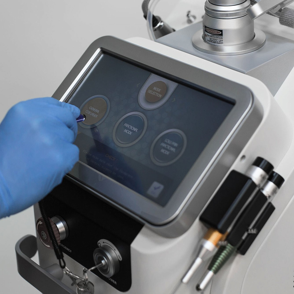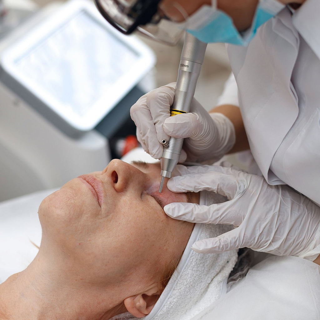 • Лазерная шлифовка кожи разной глубины, в том числе в области век, верхней губы, шеи и декольте
